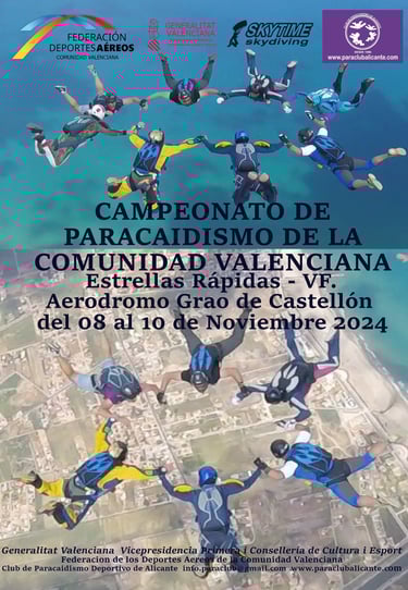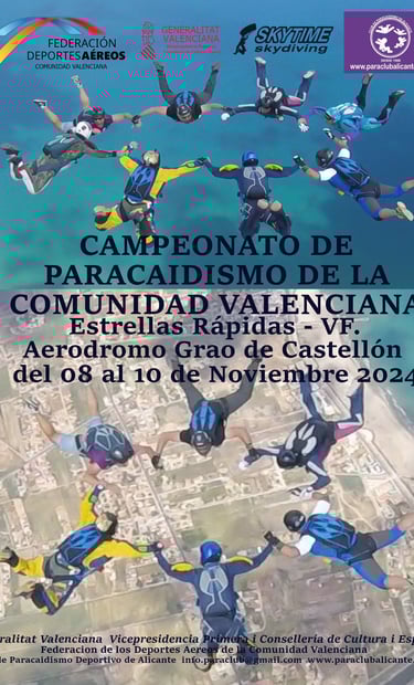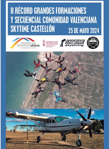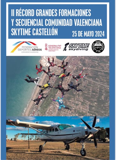 El pasado 25 de mayo 2024 se llevó acabo el intento de Récord de Grandes Formaciones de la Comunidad Valenciana, con la participación de varios componentes del Club de Paracaidismo de Alicante, lamentablemente no se llegó a conseguir.